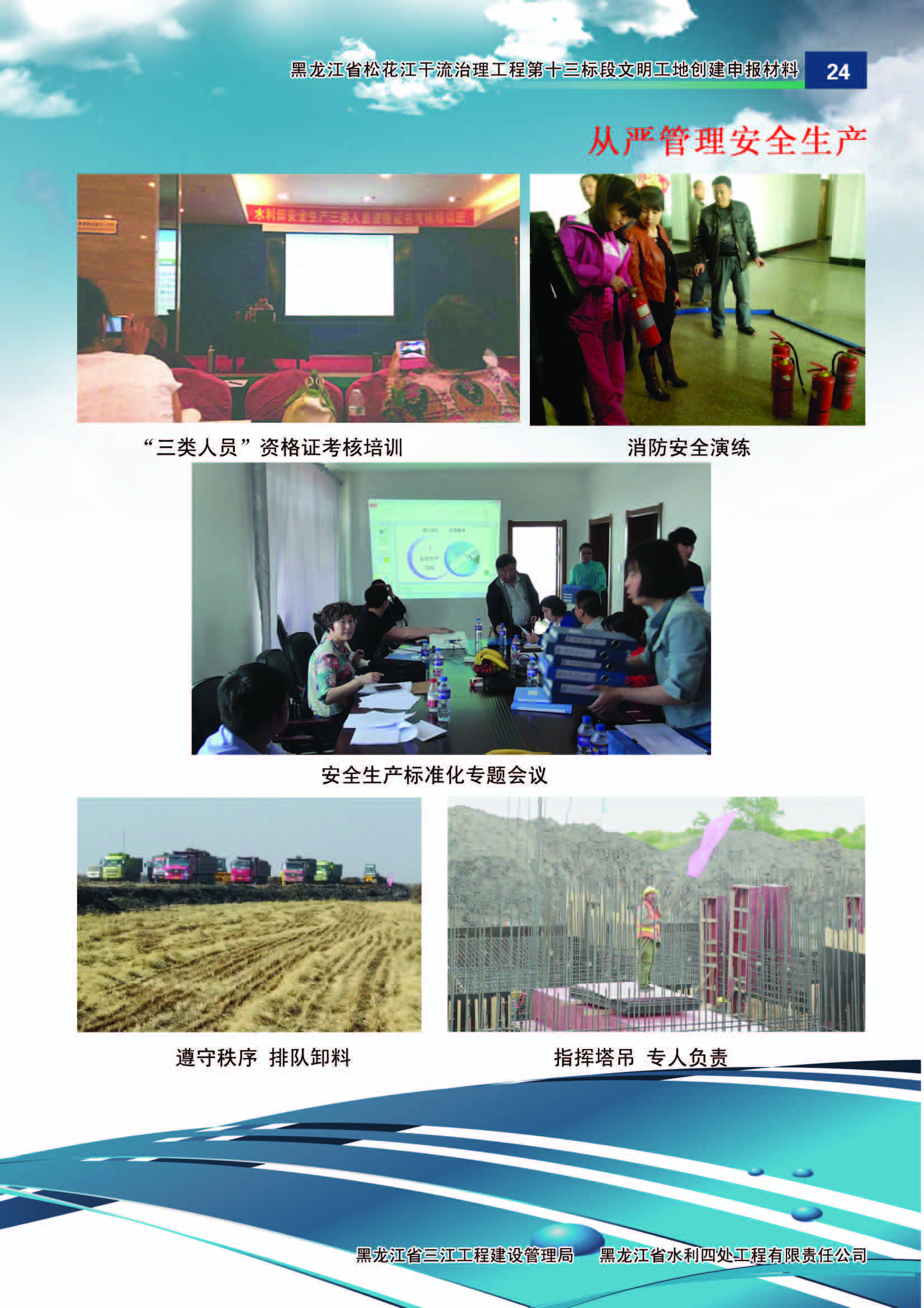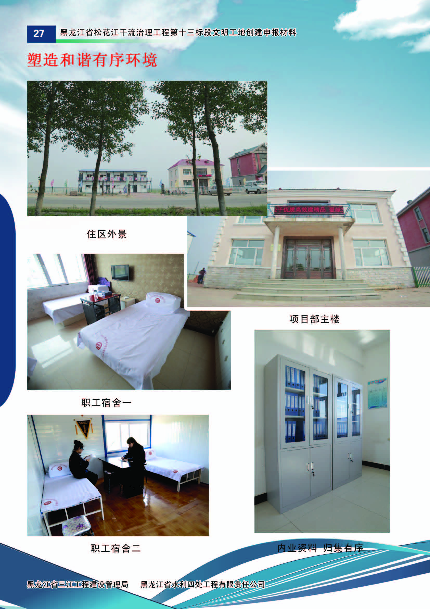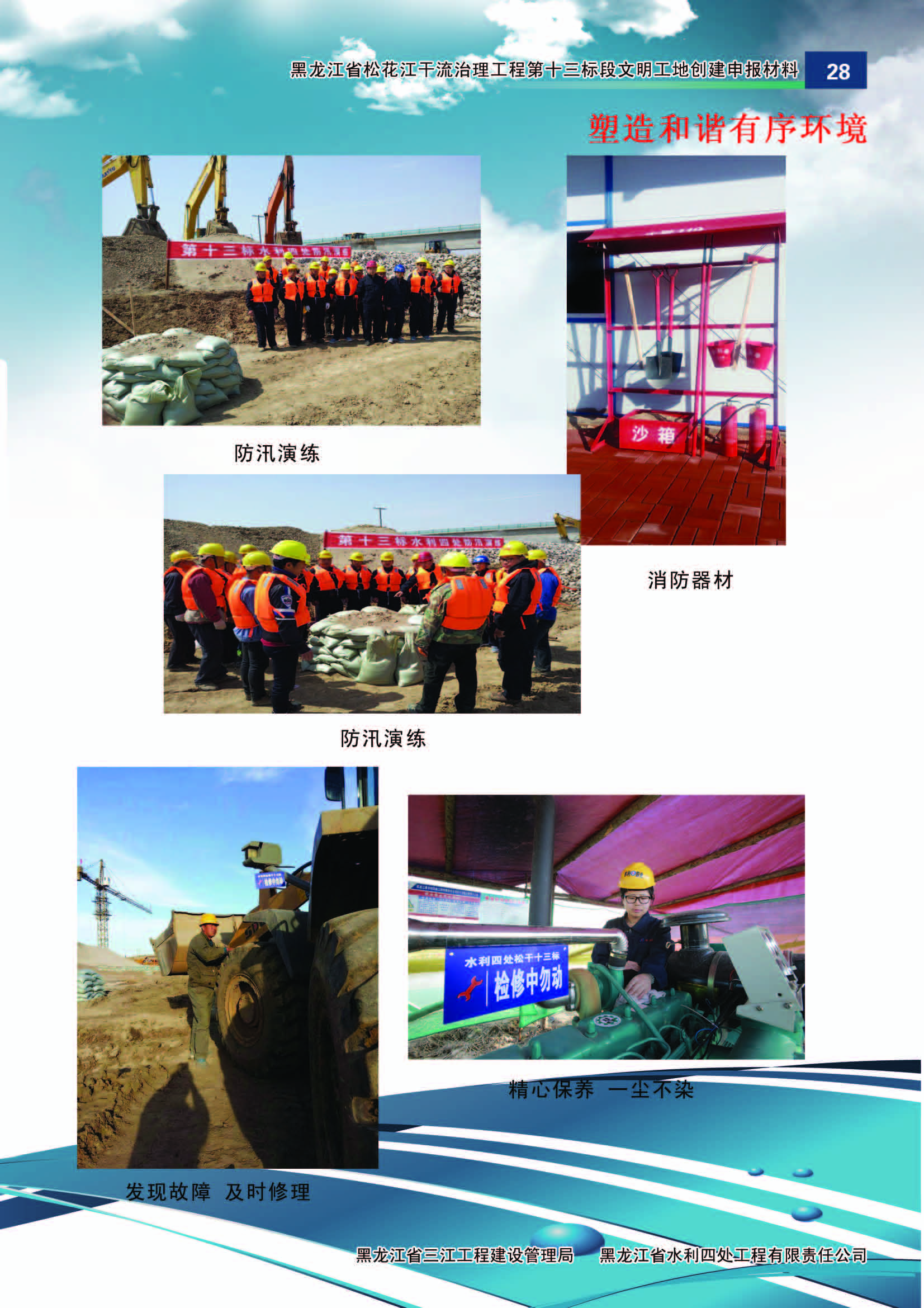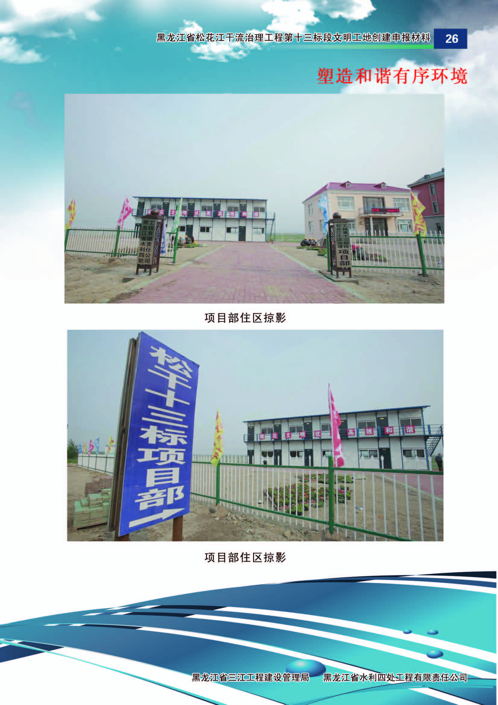 施工中黑龍江省水利四處嚴(yán)格按照水利部《水利建設(shè)工程文明工地創(chuàng)建管理辦法》的要求,積極組織開(kāi)展文明工地創(chuàng)建活動(dòng)。