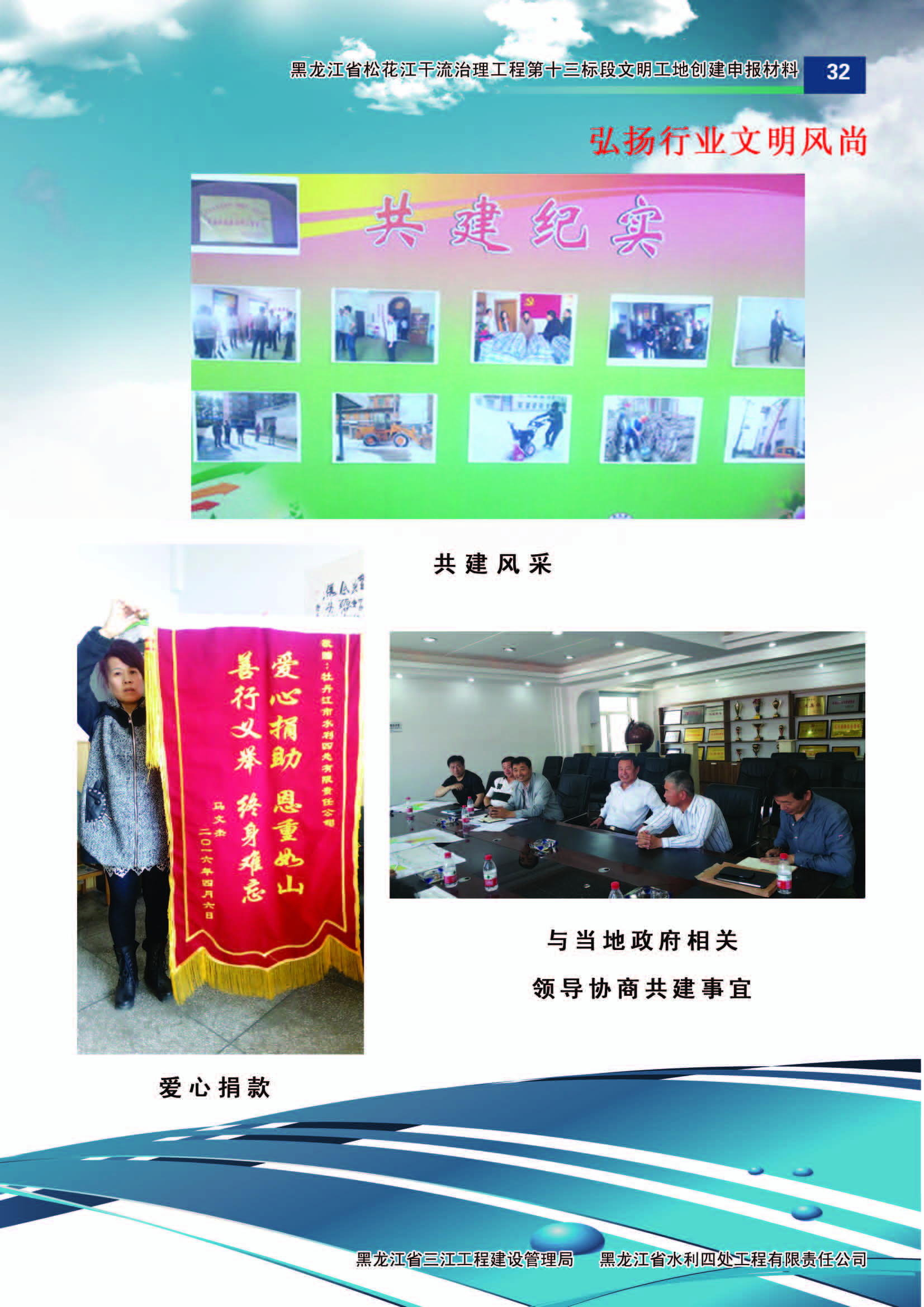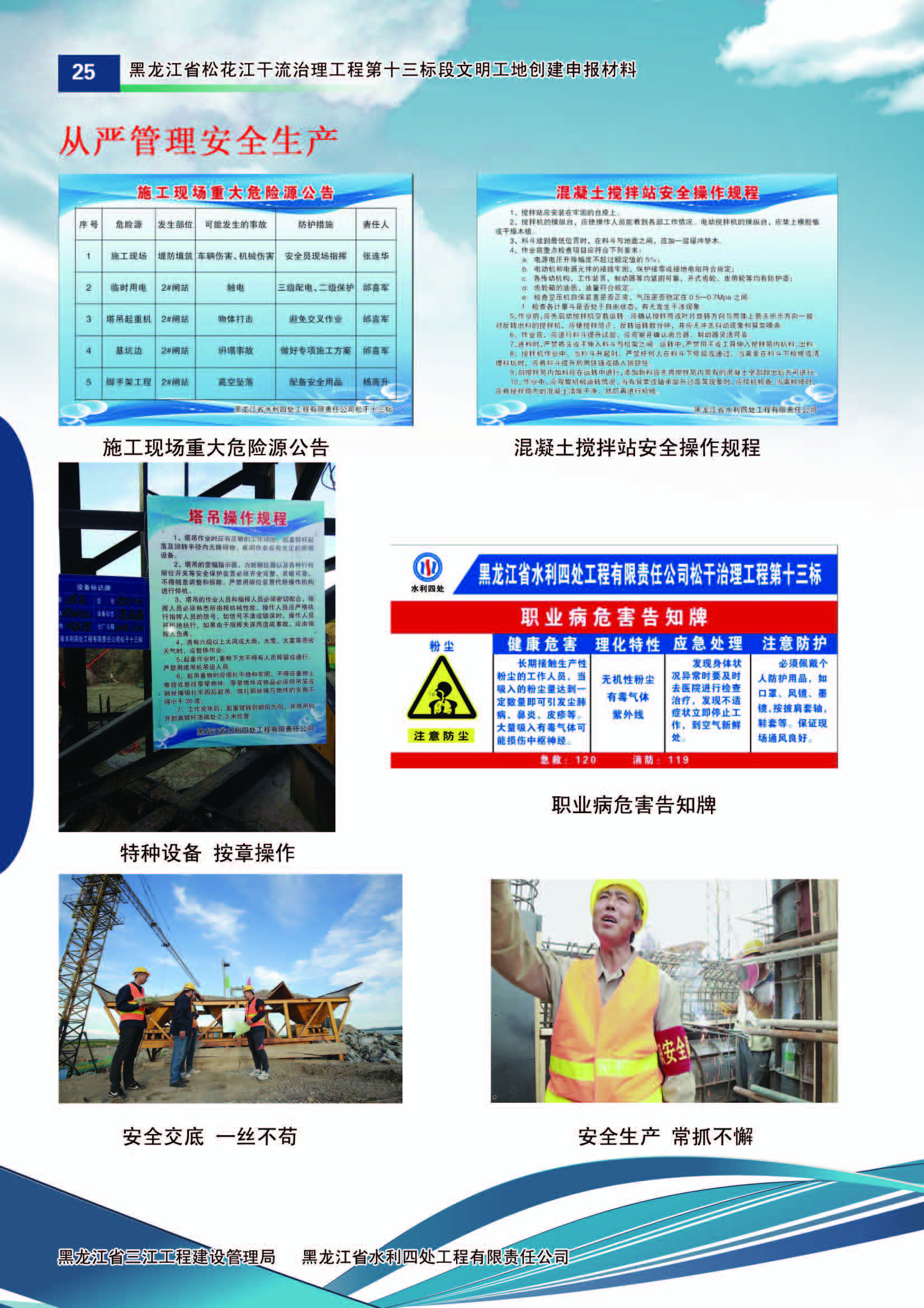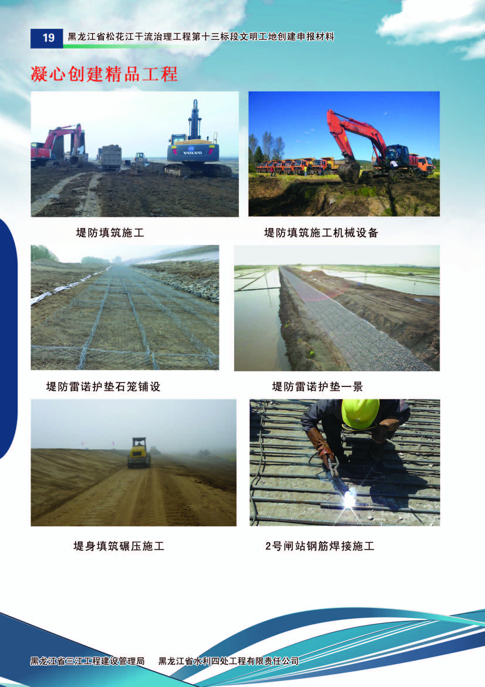 施工中黑龍江省水利四處嚴(yán)格按照水利部《水利建設(shè)工程文明工地創(chuàng)建管理辦法》的要求,積極組織開(kāi)展文明工地創(chuàng)建活動(dòng)。