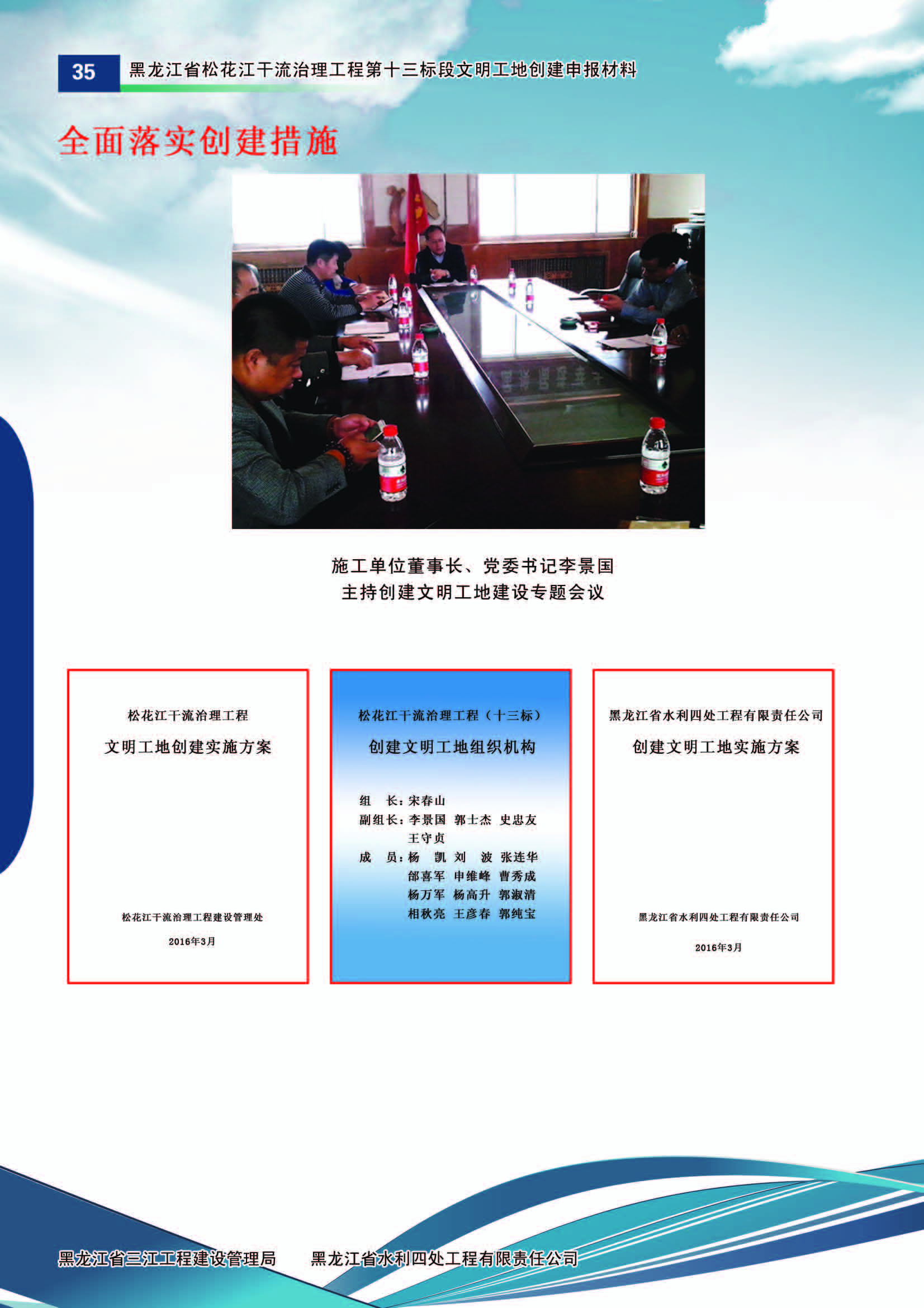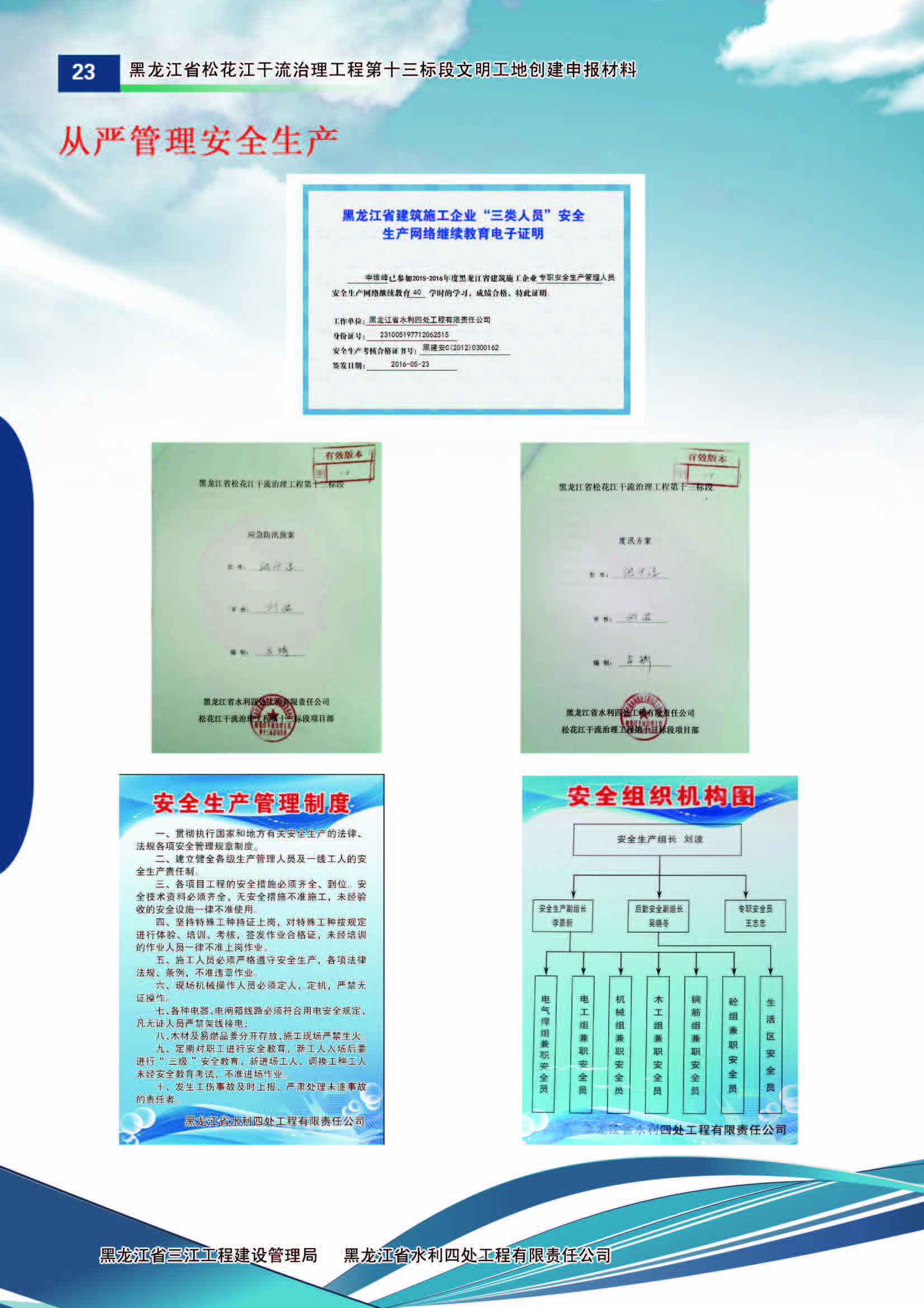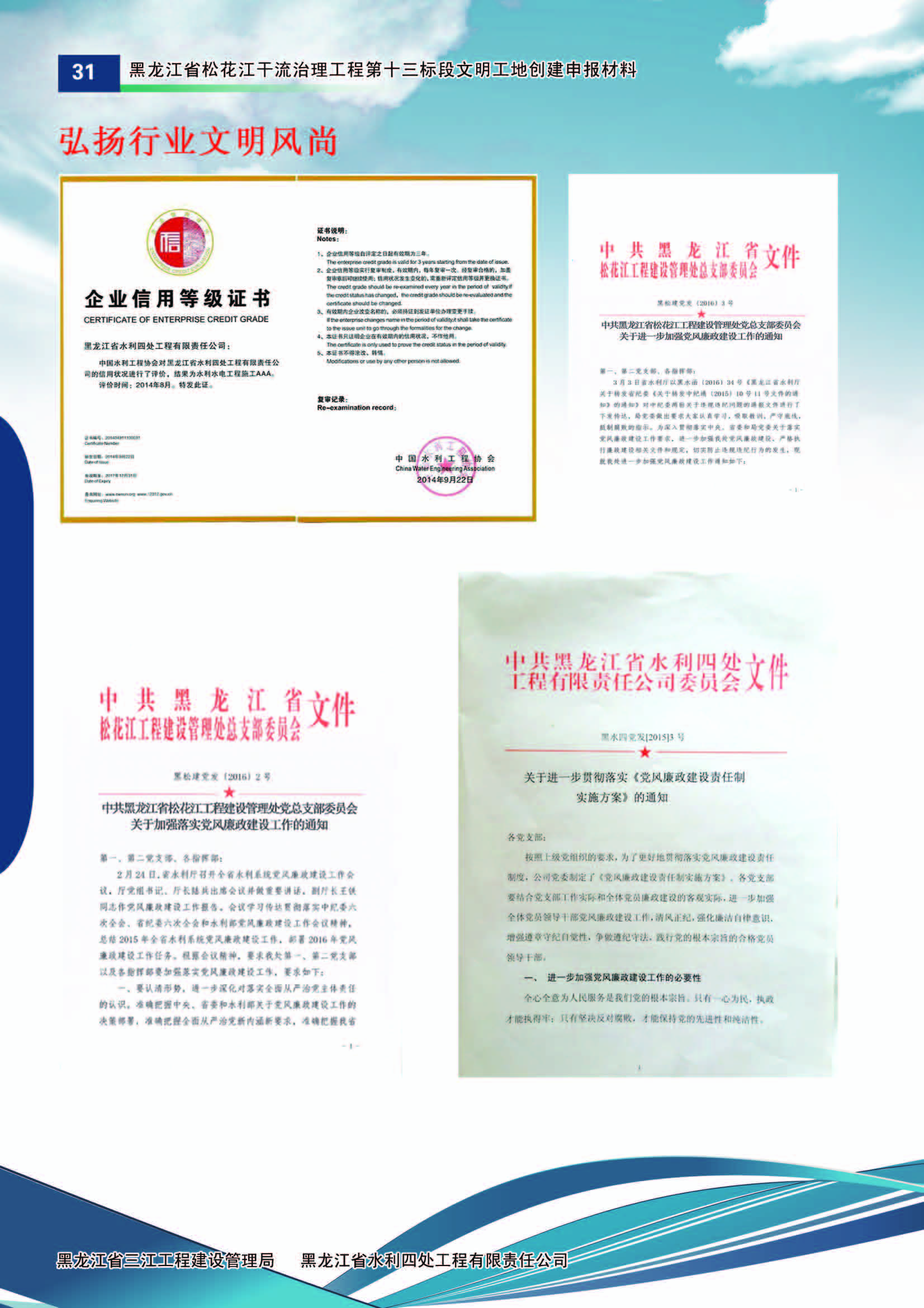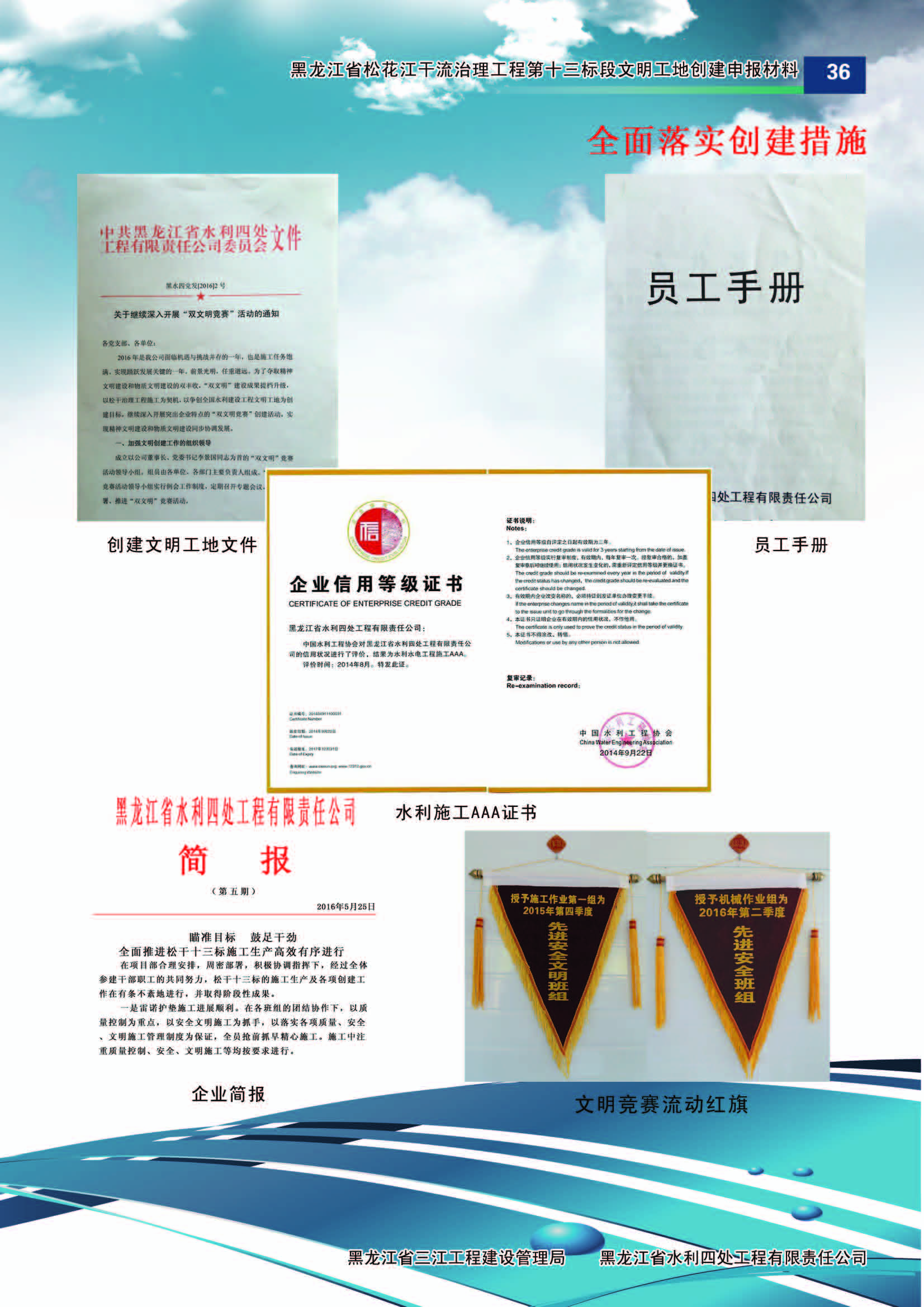 施工中黑龍江省水利四處嚴(yán)格按照水利部《水利建設(shè)工程文明工地創(chuàng)建管理辦法》的要求,積極組織開(kāi)展文明工地創(chuàng)建活動(dòng)。