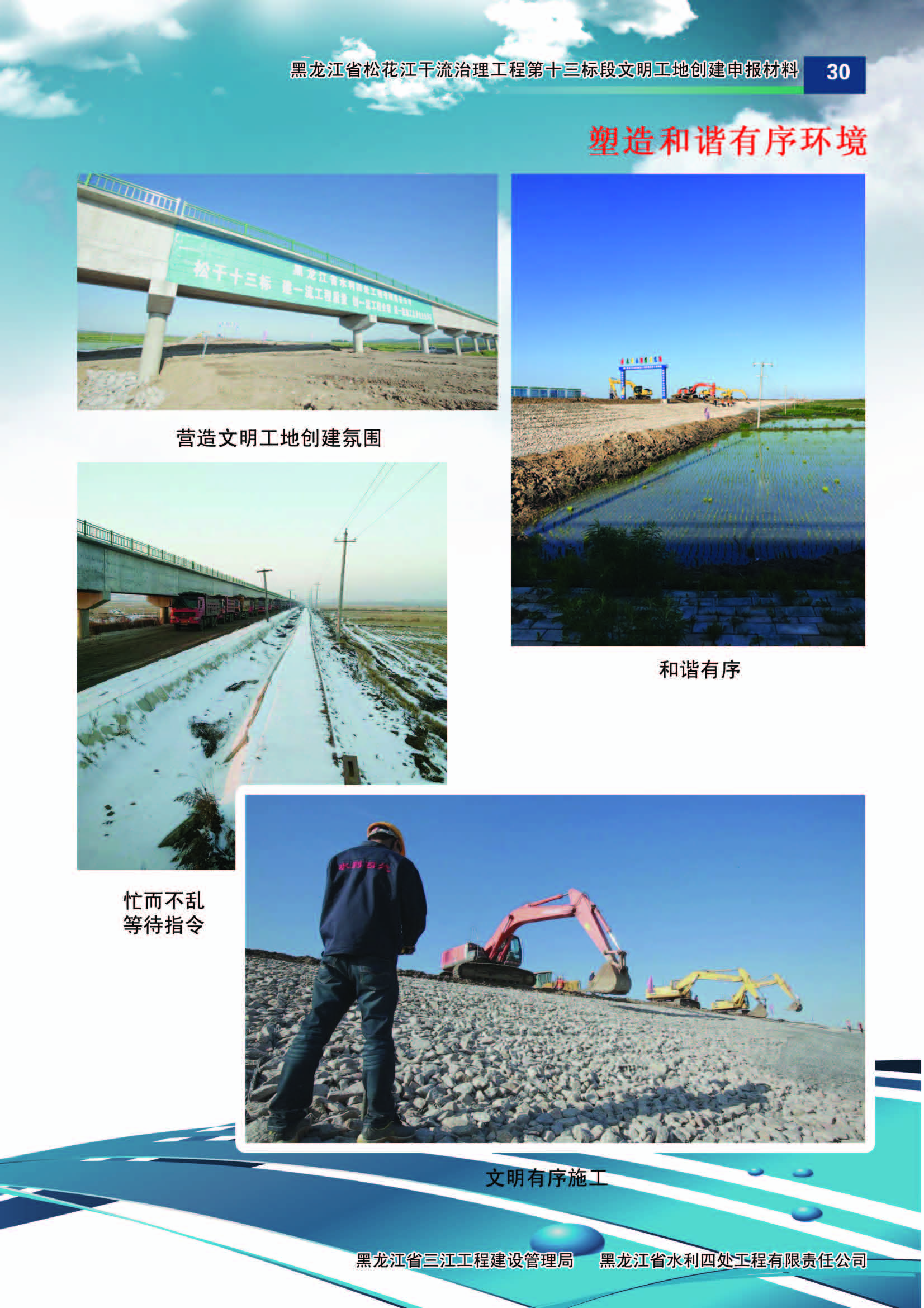 黑龍江省水利四處松干治理工程第十三標(biāo)段文明工地創(chuàng)建風(fēng)貌,猶如綻放在松花江沿岸上的一朵瑰麗之花,彰顯著水利行業(yè)的文明風(fēng)尚。