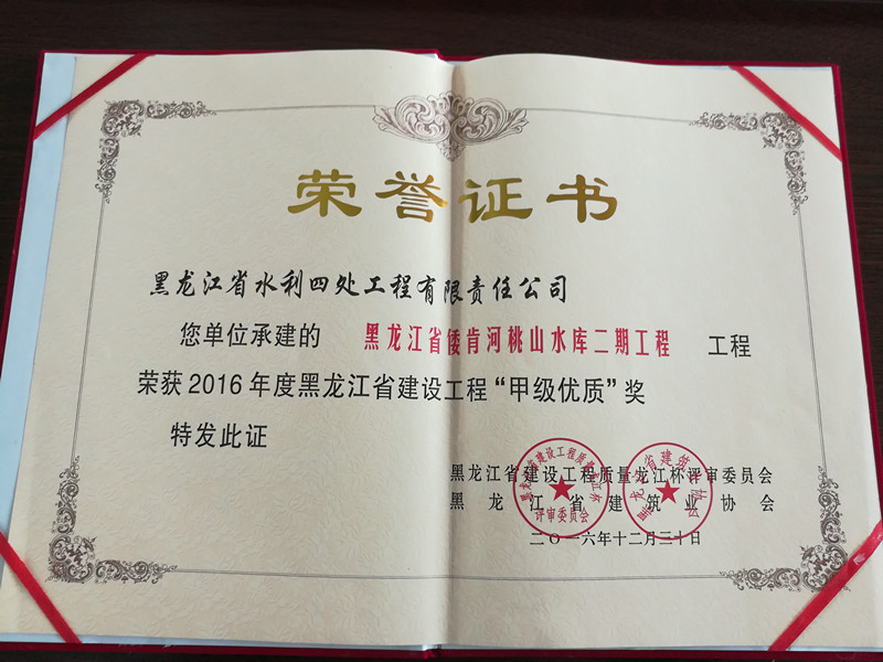 桃山水庫二期工程榮獲全省甲級優(yōu)質工程