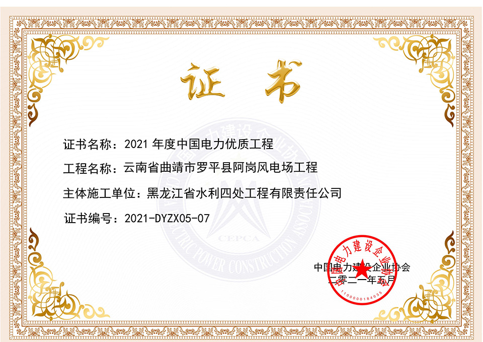 公司榮獲2021年度中國(guó)電力優(yōu)質(zhì)工程獎(jiǎng)